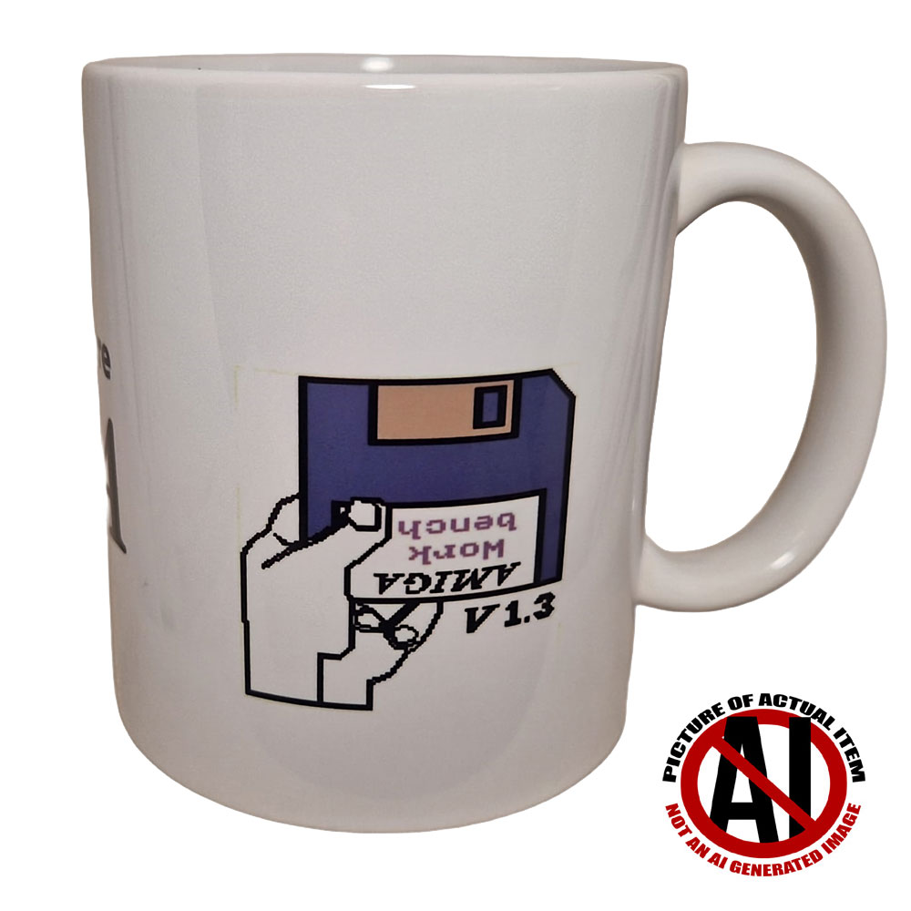 This mug features the classic 1990’s home computer logo, the ‘Commodore Amiga’ and the Workbench 1.3 icon.