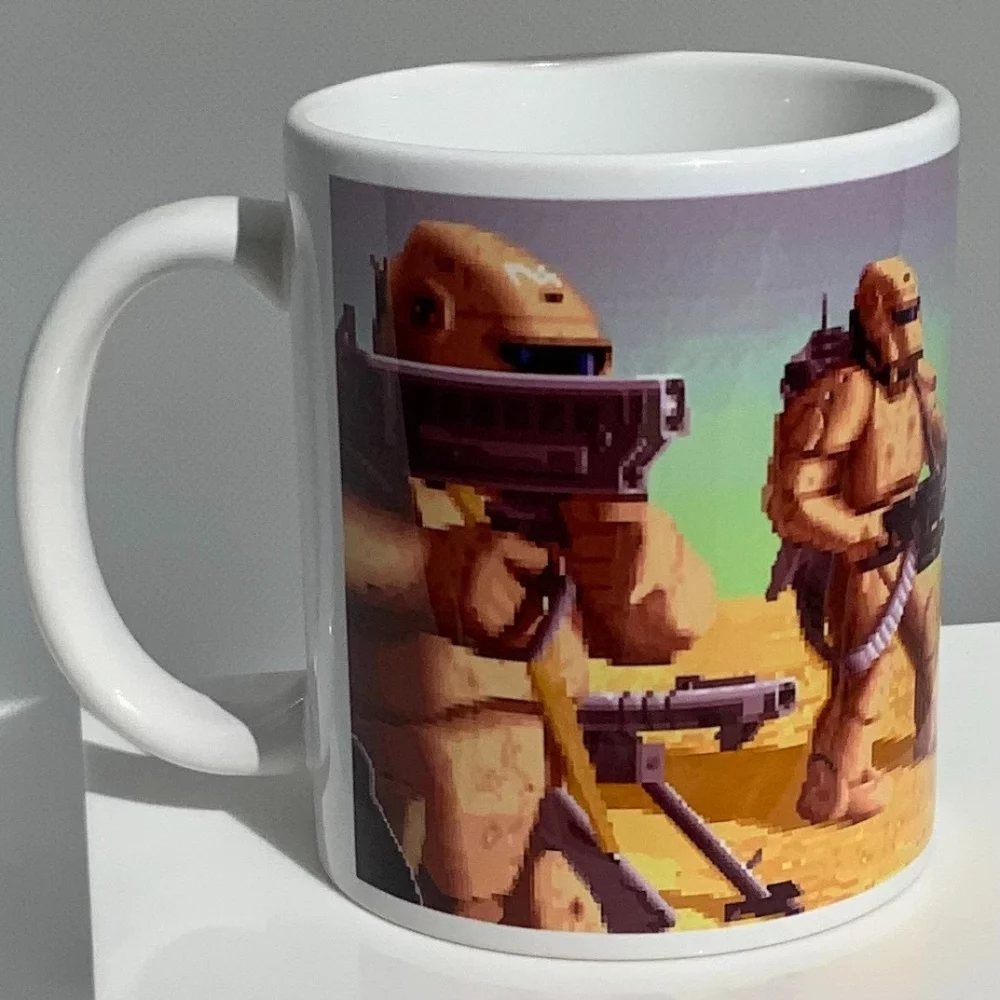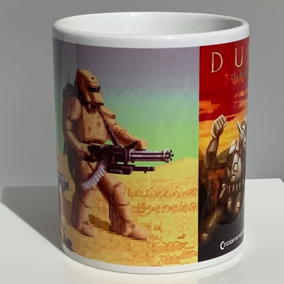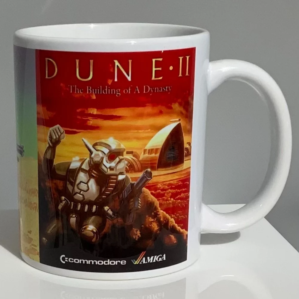 This mug features the classic 1990’s home computer game ‘Dune 2’ for the Commodore Amiga.