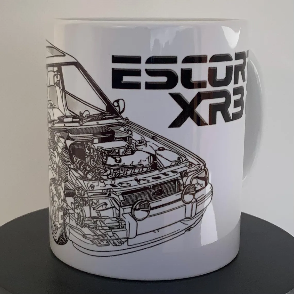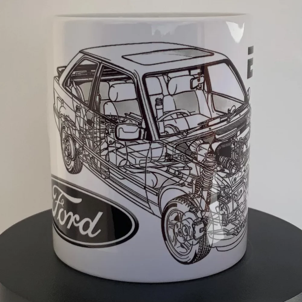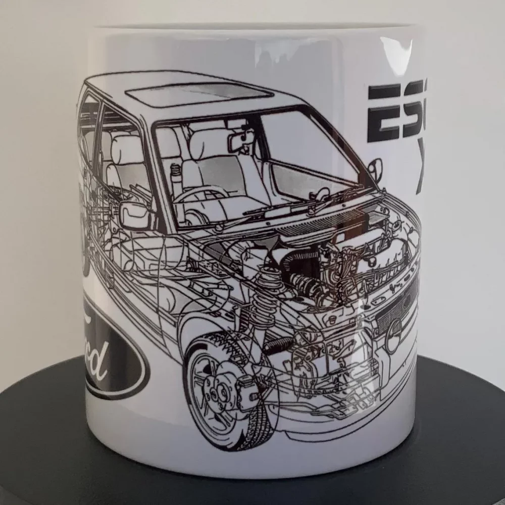 This wraparound design mug features the classic Triumph logo, along with a x-ray type image of the car and the Spitfire mk IV bonnet decal (as pictured). Please see the video to appreciate the nature of the wraparound format of this particular design..