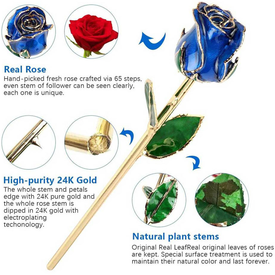 - This 24k gold rose flower very special and precious. Made of 100% real Rose, the roses, petals, leaves, thorns, stem are all real, Skilled craftsmen select high-quality petals by hand through 5-day process and 70 steps, carefully treat and gild each living rose, showcasing the uniqueness of the real rose.