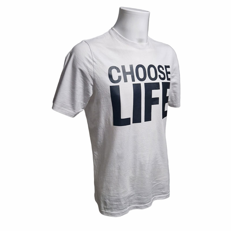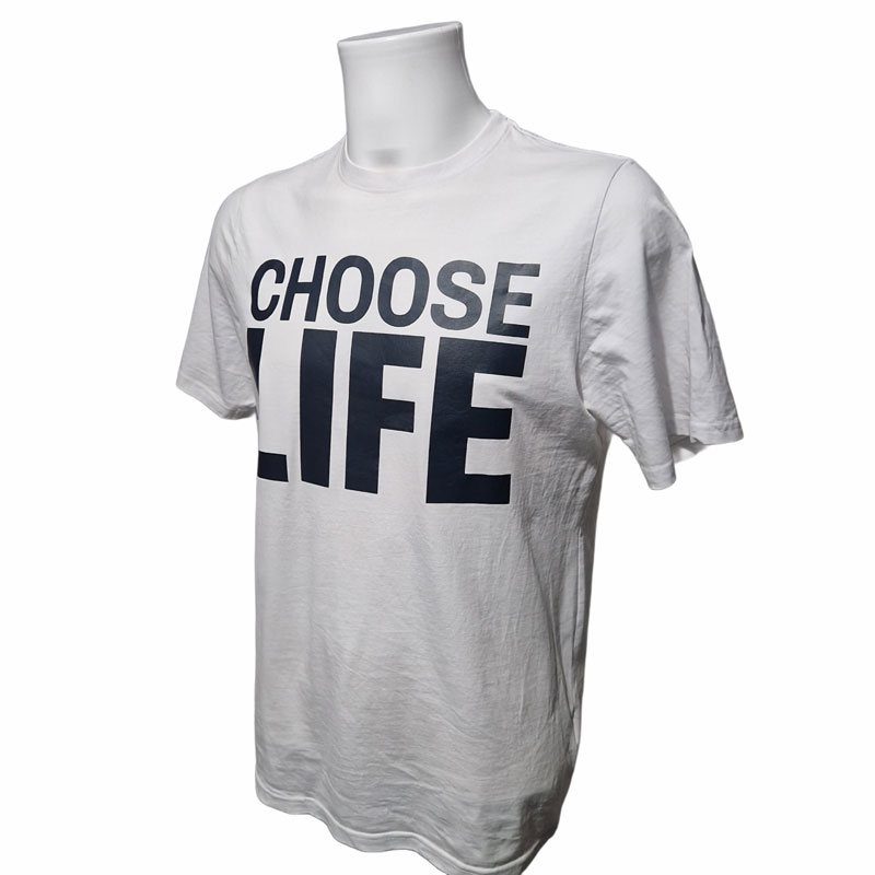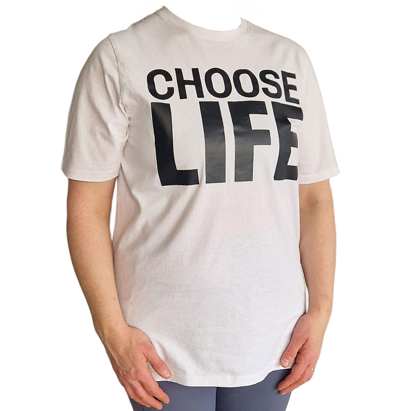 This 1980’s legendary band tribute top comes in a 180gm quality T-shirt with a vinyl cut classic “Choose Life” message.